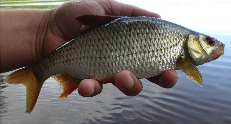 Roach & Bream Hybrids are sometimes found in the Broads. Hybridisation occurs because Roach and Bream often spawn at the same time in the same habitat. During spawning some eggs from one species can accidently be fertilised by sperm from the other species. Hybrids can be identified by counting the number of branded rays in the anal fin. Roach have 9-12; bream have 23-29, whilst hybrids have 14-19. If the fish has more than 12 such rays, it cannot be a Roach.